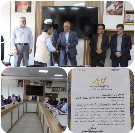در مراسمی که با حضور مدیرعامل شرکت توزیع نیروی برق شمال استان کرمان ، معاونین و مدیران توزیع برق برگزارشد با اعطای لوح تقدیر از محمدعلی مومن زاده مدیردفتر ایمنی و کنترل ضایعات شرکت  توزیع برق شمال استان کرمان تجلیل و قدردانی شد.