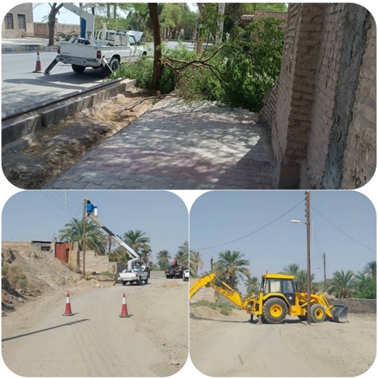 اقدامات جهادی برق شهداد برای ارتقاء ایمنی و پایداری شبکه؛ جابجایی تیرهای پرخطر اندوجرد و شاخه‌زنی با مشارکت شهرداری